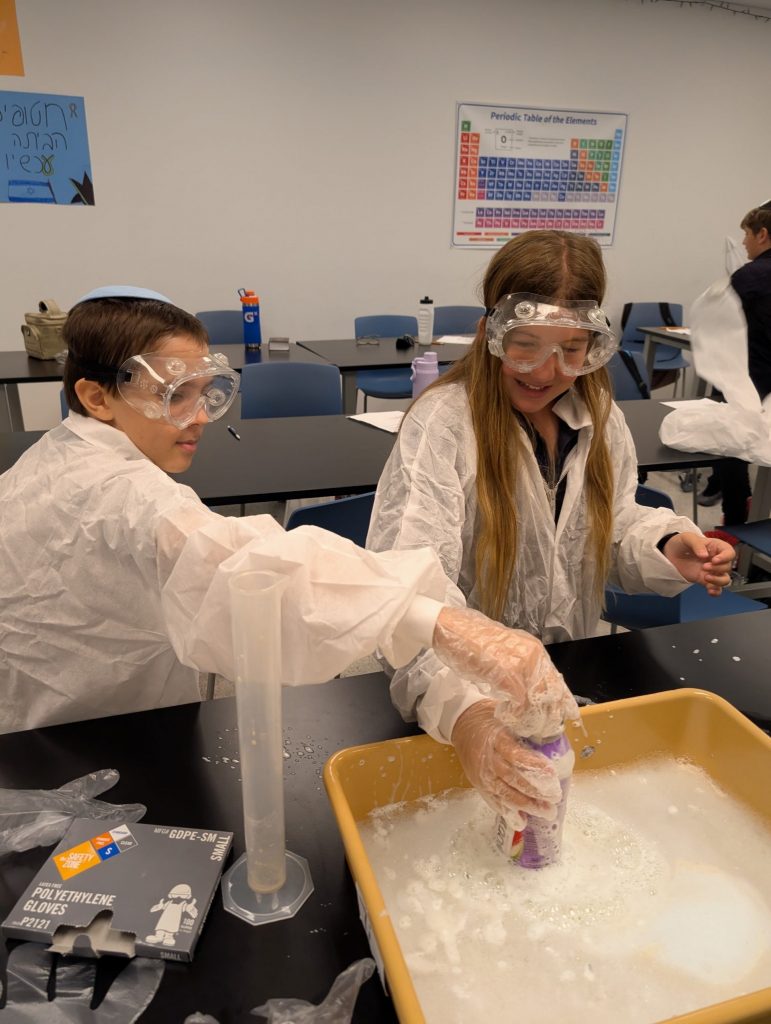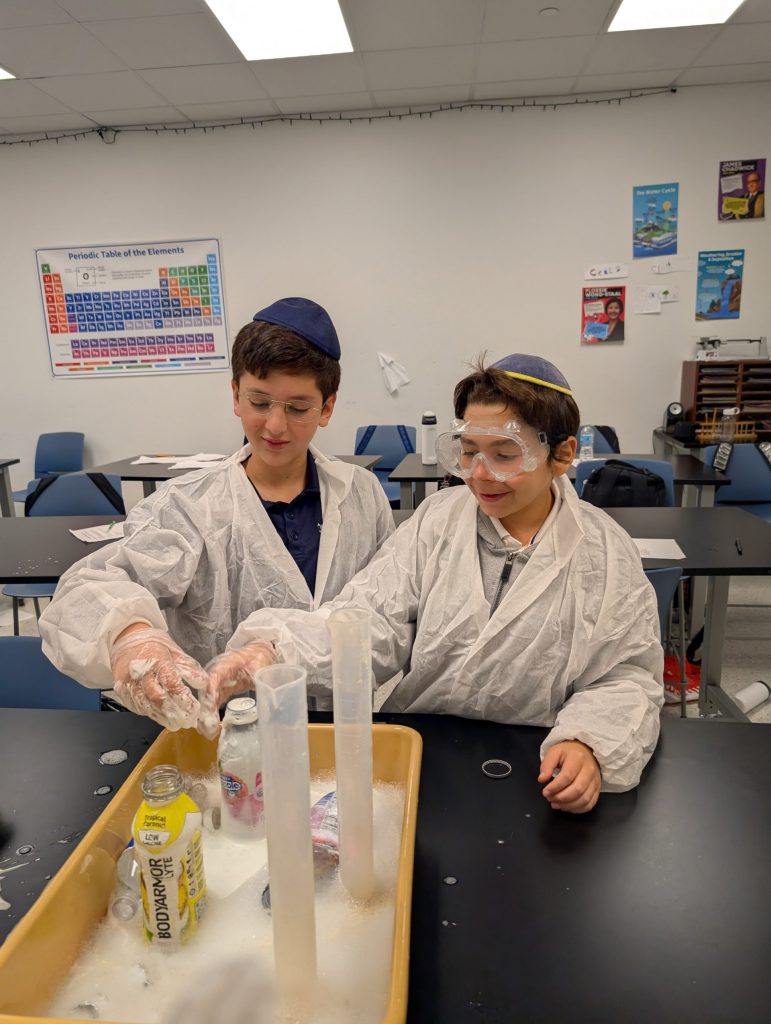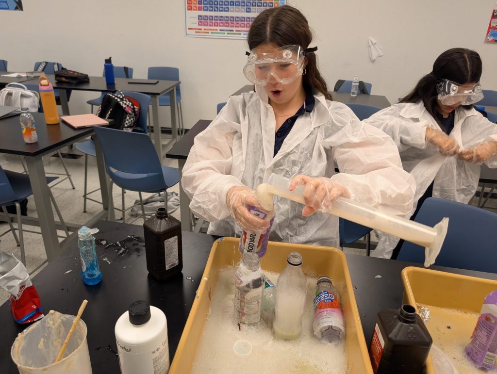 In 7th grade science, students explored chemical reactions by measuring and mixing hydrogen peroxide with yeast to create the famous “elephant toothpaste” experiment. Our 6th graders also took part in this exciting activity, using it as a hands-on introduction to experimentation and the scientific method. Categories (tags): AcademicsMiddle SchoolScienceSTEAM