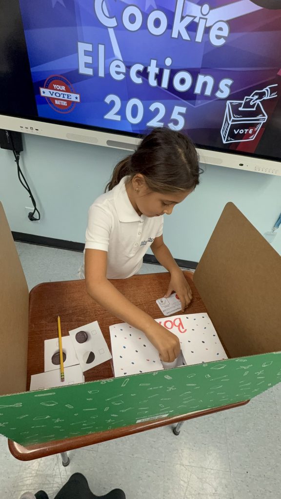 Election Day in our Lower School was full of excitement as students learned about voting and leadership. Kindergarteners were visited by last year’s Kindergarten Presidents: Ayden Almagor, Mia Ehrman, Ariel Kleiner, and Lielle Sazer, who explained how elections work and what it means to be a good leader. In first grade, students held their own “cookie election,” where the Black & White Cookie won in both classes. Second graders registered to vote, cast ballots, and tallied votes to choose their favorite brain break. It was a fun and meaningful way for all our students to experience the power of voting. Second graders registered to vote, cast ballots, and tallied votes to choose their favorite brain break. It was a fun and meaningful way for all our students to experience the power of voting. Categories (tags): Elementary